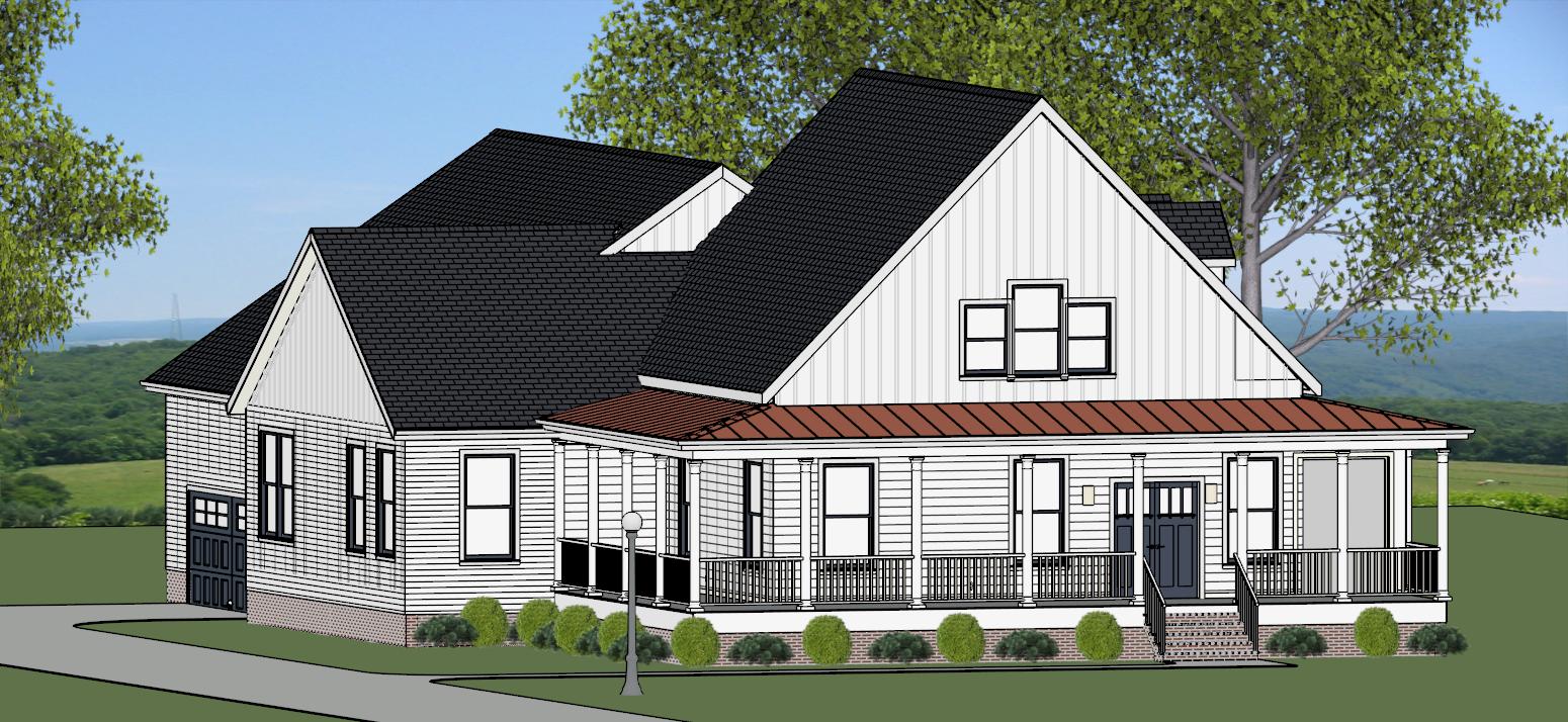 The Crestwood is one of personal favorites and has a country feel to it. This not a small home at over 3,500 square feet, but presents itself as much smaller from the front. Because of its narrow profile it will need a deep lot to fit within your jurisdiction’s set-back requirements. This house has a wonderful flow from the front through the family room and into the kitchen which makes for ideal entertainment. One feature of this house is the first floor Master Suite and an additional bedroom with its own bathroom that could be used as a guess room or future in-law suite. The second floor offers two additional bedrooms and centralized bathroom. And for those that need a home office a small space is provided as well. The house has a full wrap-around front porch which is screened in the right allowing for a comfortable place to have a cup of coffee in the mornings. Keep in mind that this plan can be bought as is or used as a starting point for the design of your dream home.