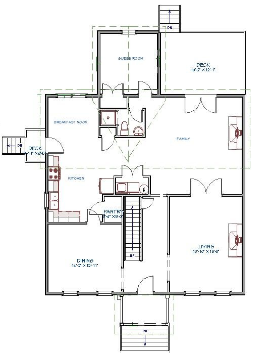 The Franklin is a design to that packs a lot of house into a narrow space. With its traditional front design, it will fit into any neighborhood. This plan offers a guess bedroom on the first floor and is perfect for those visiting relatives during the holiday season. Keep in mind that this plan can be bought as is or used as a starting point for the design of your dream home.